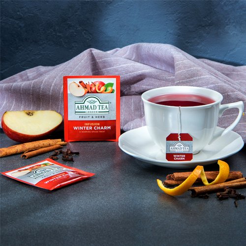 Relaxing. A delightful blend that combines the warmth of cinnamon and freshness of citrus fruits with a note of apple, perfectly balanced, it gives you a warming beverage with a real festive flavor and taste. Does not contain caffeine. Brewing should take approximately 5 minutes.Tea bags with strings, individually foil wrapped, allow preserving the tea flavour and aroma.