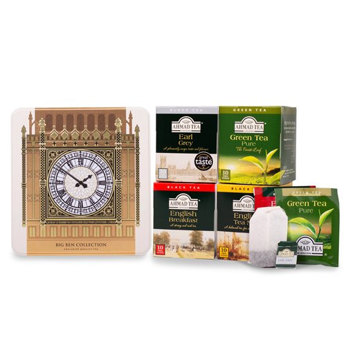 Tunnustage parimat Briti teed Big Ben Collectioniga – kaunilt meisterdatud metallist teekarp, mis on täidetud nelja ikoonilise seguga. Londoni maailmakuulsast kellatornist inspireeritud pilkupüüdev komplekt on ideaalne austusavaldus Briti pärandile – ühendades stiili, maitse ja traditsiooni ühes unustamatus kingituses.