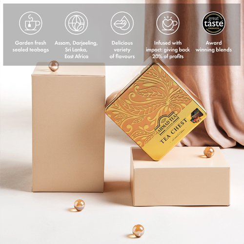 See kaunis roosakas-kuldne Tea Chest koondab neli meie kõige hinnalisemat segu. Seest leiad 40 erakordselt head tassitäit teed.