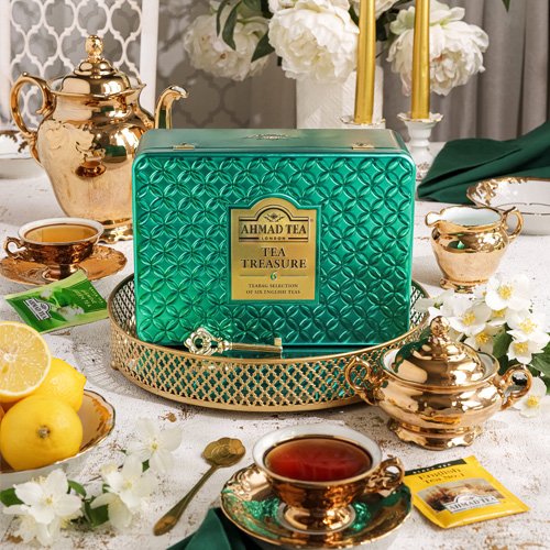 Tea Treasure Caddy on ideaalne leid igale teesõbrale. Selles on peidetud kuus hinnatud segu, mille abil saate nautida Ahmad Tea hiilgust hommikust, keskpäevast kuni õhtuni. Olenemata sellest, kas otsite rahustavat musta või puhastavat rohelist jooki, see teede aardelaegas pakub kõiki vajalikke pärleid, mis aitavad teil päeva jooksul orienteeruda.